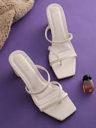 A pair of block heel ,has regular ankle and closed back